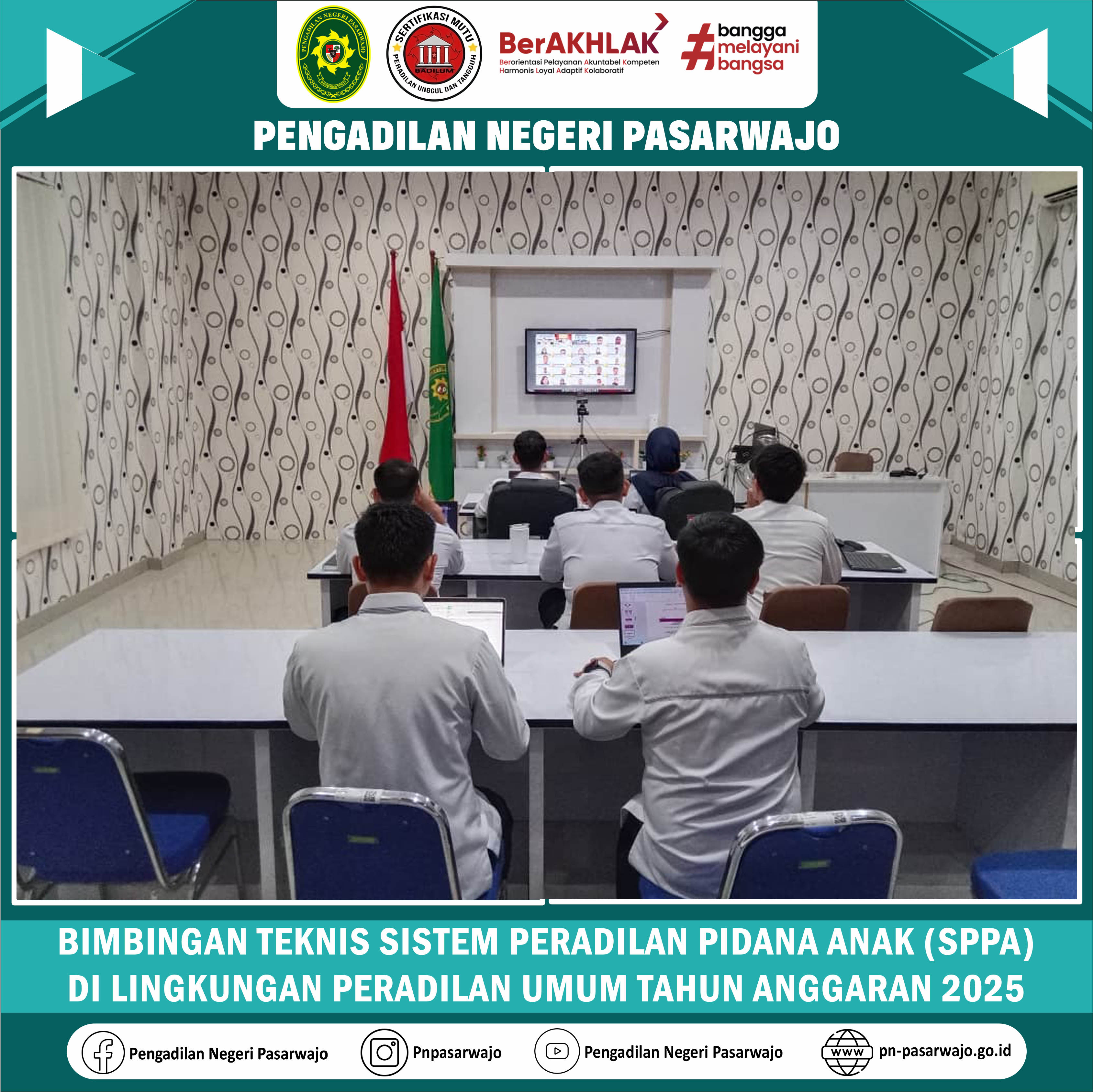 Pasarwajo | Senin 25 Agustus 2025, sehubungan diselenggarakannya Kegiatan Bimbingan Teknis Sistem Peradilan Pidana Anak (SPPA) dengan metode blended learning bagi Hakim Angkatan IX di Lingkungan Peradilan Umum Tahun Anggaran 2025, Para Hakim Pengadilan Negeri Pasarwajo mengikuti kegiatan Bimbingan Teknis tersebut secara daring melalui Zoom. Kegiatan yang dilaksanakan di ruang Media Center Pengadilan Negeri Pasarwajo ini berjalan dengan baik dan lancar dari awal hingga akhir.