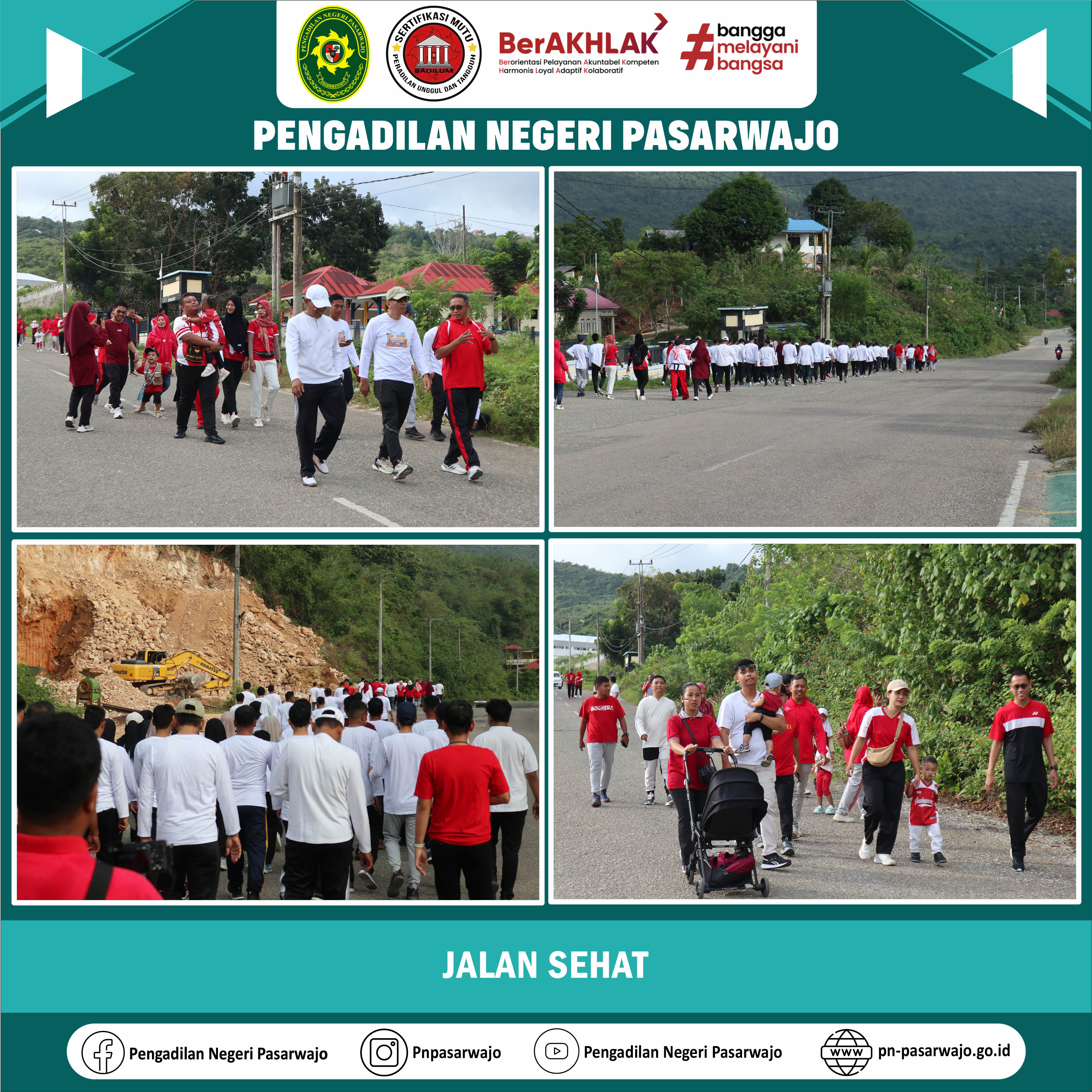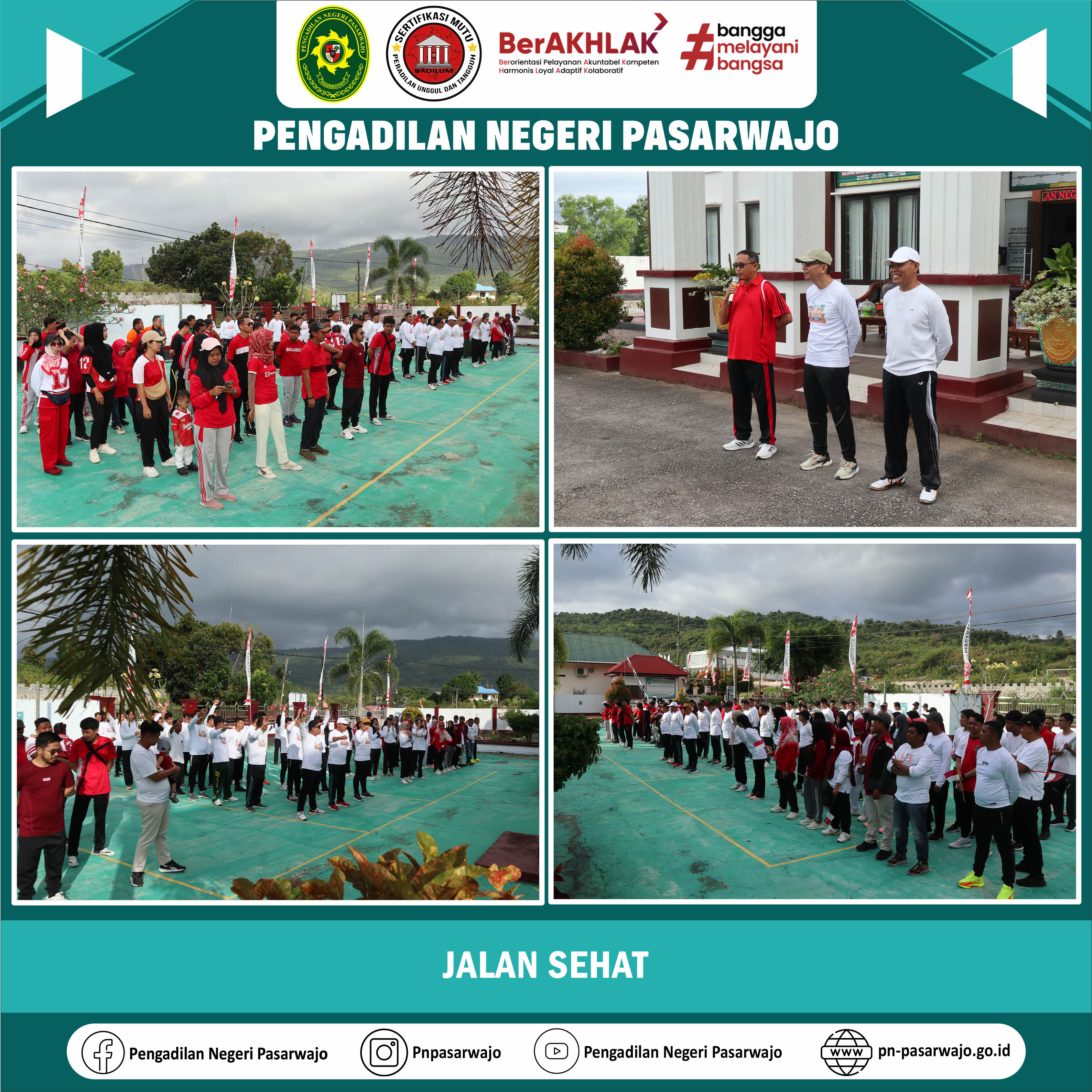 Acara Jalan Santai ini diawali dengan sambutan dari Para Ketua instansi dan sebagai simbolis dibukanya pelaksanaan Jalan Santai yaitu dengan menggunakan confetti. Jalan Santai ini dimulai dari Pengadilan Negeri Pasarwajo hingga menuju ke RSUD Buton kemudian kembali lagi ke Pengadilan Negeri Pasarwajo. Acara Jalan Santai ini berjalan dengan baik dan lancar tanpa ada hambatan.