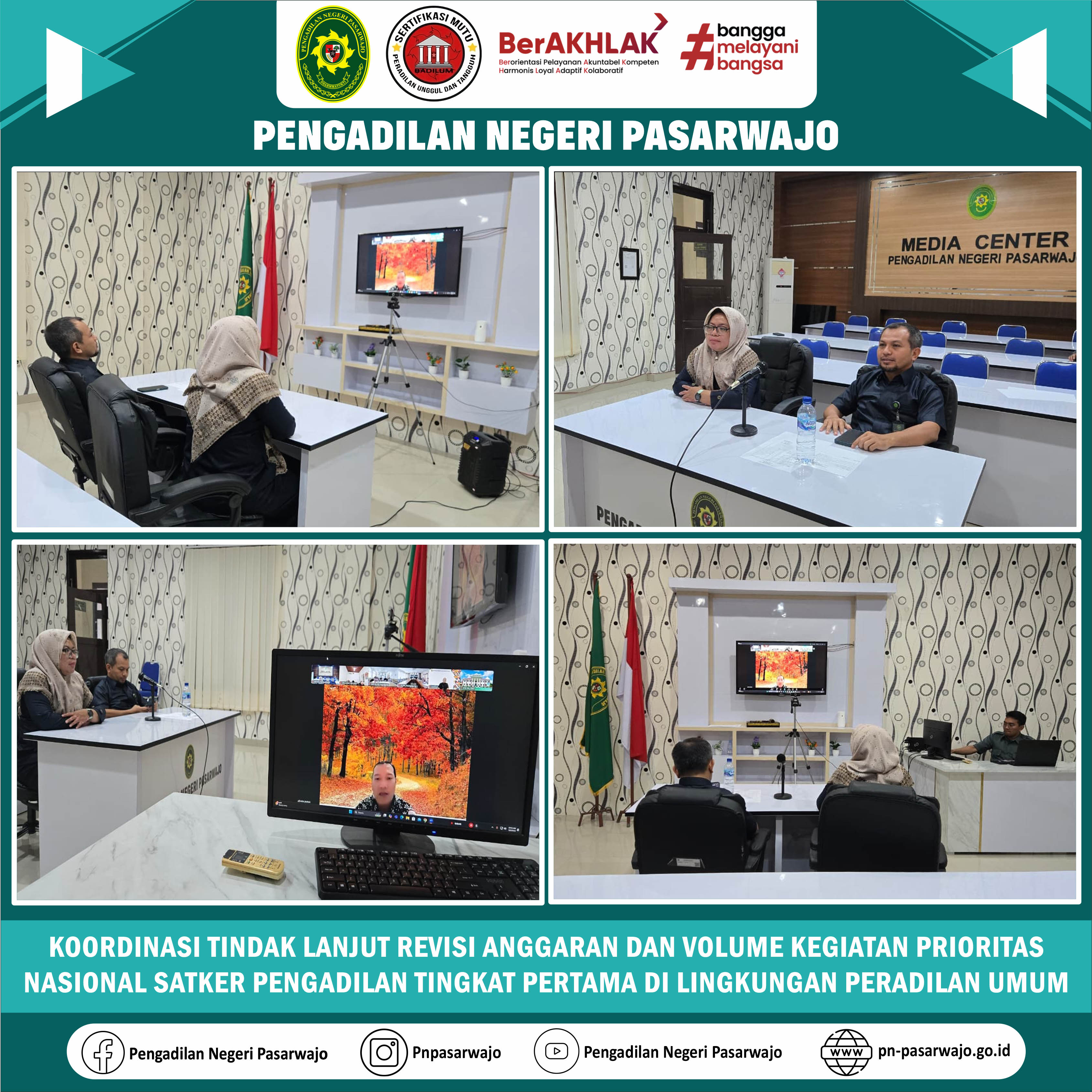 Pasarwajo | Rabu, 3 September 2025, Bapak Hery Kiswanto, S.H., selaku Plh. Sekretaris didampingi oleh Ibu Nur Dwi Rahti, S.H., M.H., Kasubbag PTIP mengikuti kegiatan Koordinasi Tindak Lanjut Revisi Anggaran dan Volume Kegiatan Prioritas Nasional Satker Pengadilan Tingkat Pertama Di lingkungan Peradilan Umum secara daring melalui zoom. Acara ini Center Pengadilan Negeri Pasarwajo. Kegiatan berjalan dengan baik dan lancar dari awal hingga akhir.
