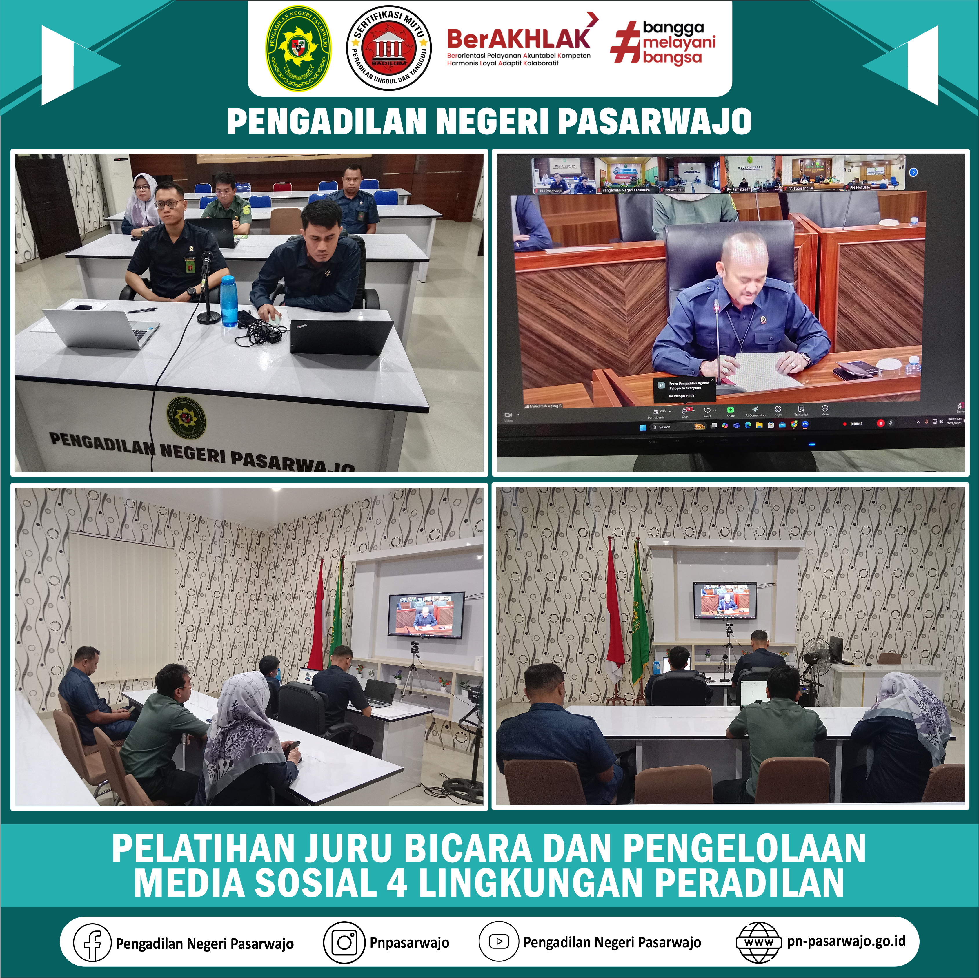Pasarwajo | Selasa, 29 Juli 2025, Juru Bicara, Humas, Panmud Hukum daan Pengelola Media Sosial Pengadilan Negeri Pasarwajo mengikuti Pelatihan Juru Bicara dan Pengelolaan Media Sosial 4 Lingkungan Peradilan. Pelatihan yang diadakan oleh Badan Urusan Administrasi Mahkamah Agung RI ini diikuti secara daring melalui Zoom di Ruang Media Center Pengadilan Negeri Pasarwajo. Dengan diadakan Pelatihan ini diharapkan dapat meningkatkan kemampuan dalam komunikasi dan penyampaian informasi kepada publik. Kegiatan pelatihan ini berjalan dengan baik dan lancar dari awal hingga akhir.