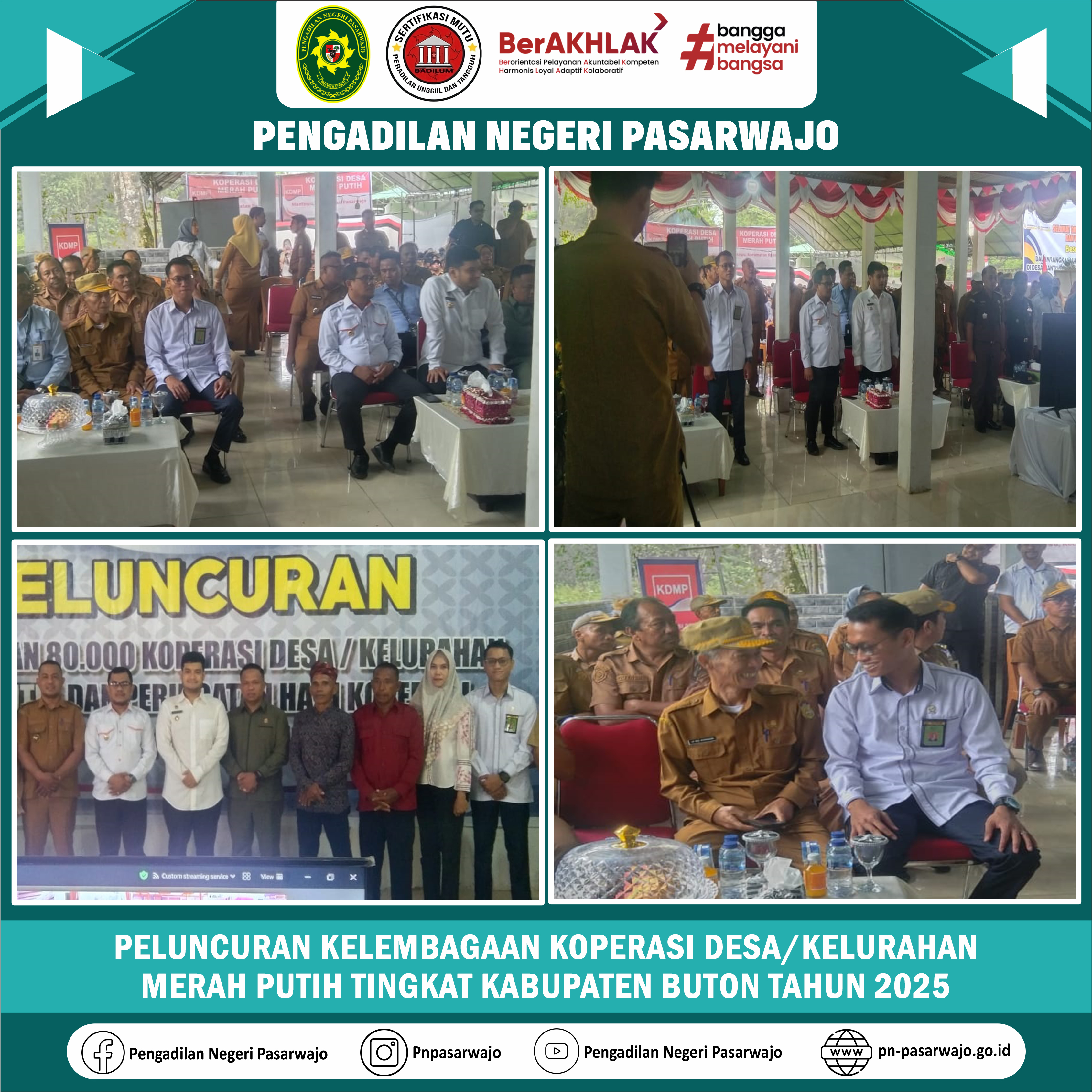 Pasarwajo | Senin, 21 Juli 2025, Sehubungan dengan undangan Peluncuran Kelembagaan Koperasi Desa/Kelurahan Merah Putih Tingkat Kabupaten Buton Tahun 2025, Bapak Anugrah Prima Utama, S.H., Hakim Pengadilan Negeri Pasarwajo mewakili Ketua Pengadilan menghadiri kegiatan tersebut yang dilaksanakan di Kantor Koperasi Desa Merah Putih Mantowu Kecamatan Pasarwajo, Kabupaten Buton Sulawesi Tenggara.