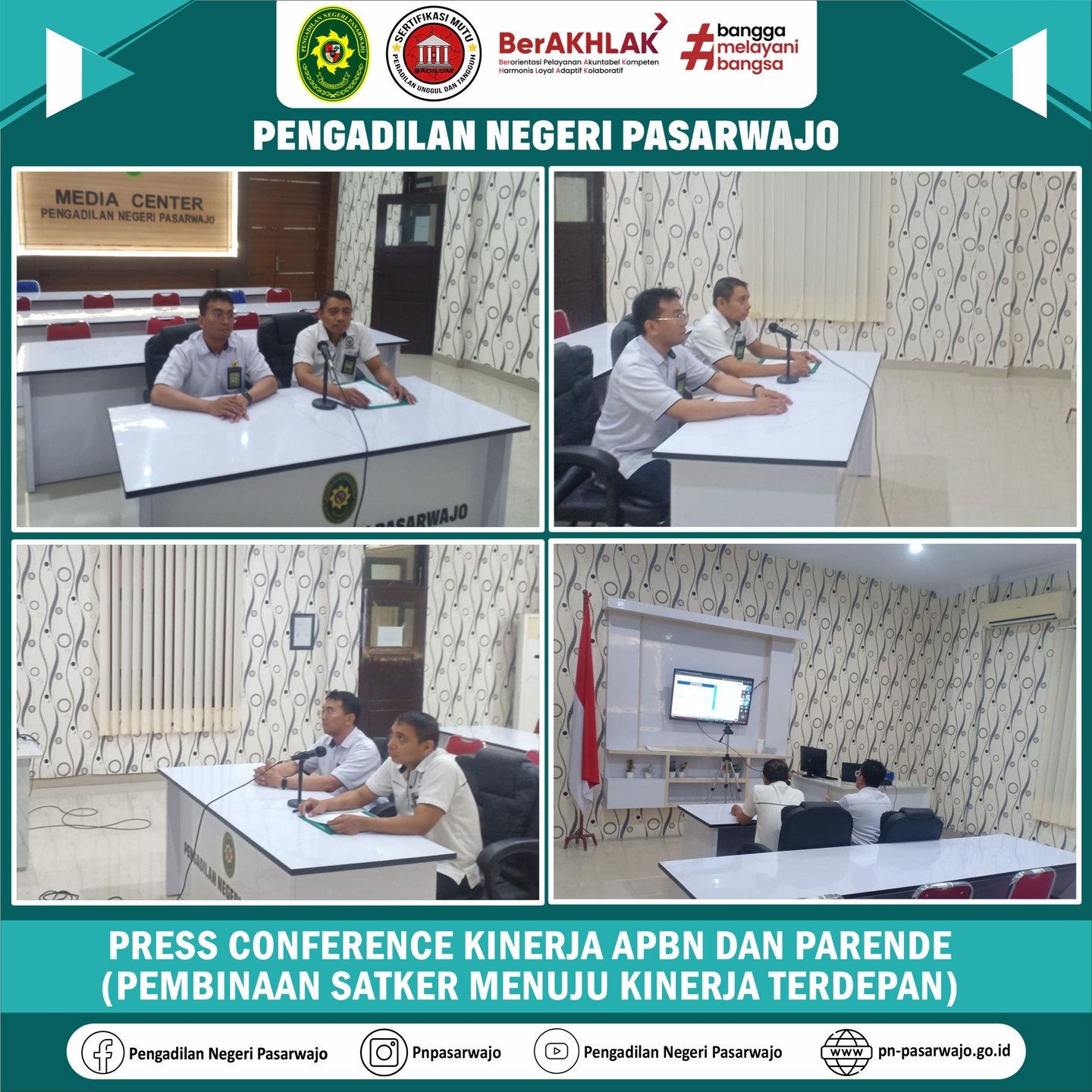 Pasarwajo | Senin, 27 Oktober 2025, Staf Pengelola Keuangan mengikuti kegiatan Press Conference Kinerja APBN dan PARENDE (PEMBINAAN SATKER MENUJU KINERJA TERDEPAN). Kegiatan tersebut diikuti secara daring di Ruang Media Center Pengadilan Negeri Pasarwajo.