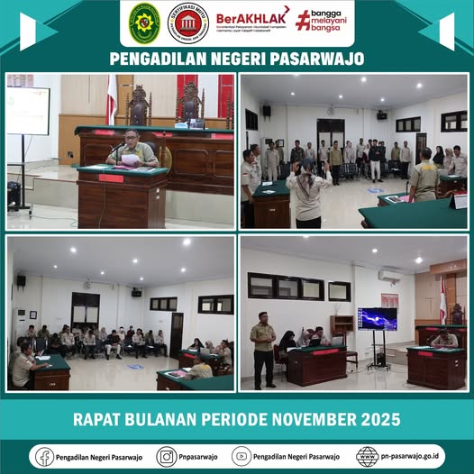 Pasarwajo | Kamis, 13 November 2025, dalam rangka meningkatkan kinerja dan kualitas pelayanan peradilan, Pengadilan Negeri Pasarwajo menggelar Rapat Evaluasi Kinerja Bulan Oktober Tahun 2025. Kegiatan ini dilaksanakan di Ruang Sidang Cakra dan diikuti oleh seluruh aparatur Pengadilan Negeri Pasarwajo.