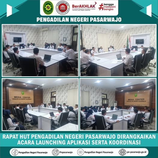 Pasarwajo | Senin, 24 November 2025, Telah dilaksanakan Rapat dalam rangka persiapan memperingati HUT Pengadilan Negeri Pasarwajo yang dirangkaikan dengan launching aplikasi E-Kasat dan E-Pelita serta rapat koordinasi pelaksanaan KUHP dan KUHAP yang di pimpin langsung oleh Bapak Ivan Budi Hartanto, S.H., M.H. Ketua Pengadilan Negeri Pasarwajo. Melalui kegiatan ini, Pengadilan Negeri Pasarwajo berkomitmen untuk terus berbenah, memperbaiki kualitas layanan, dan membangun budaya kerja yang produktif, inovatif, dan berintegritas.
