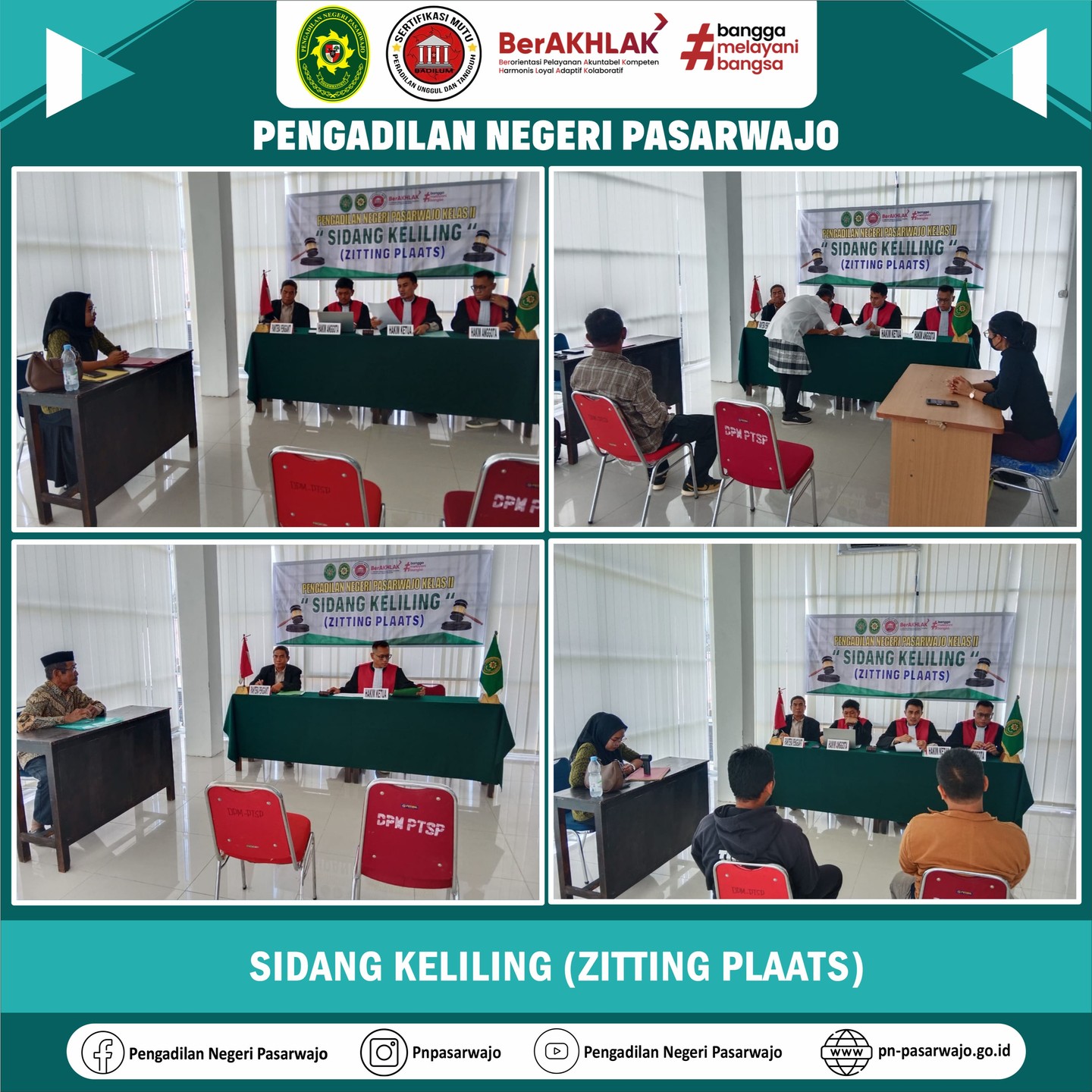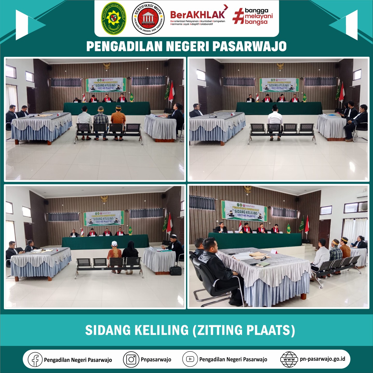 Pasarwajo | Selasa, 28 Oktober 2025, bertempat di MPP Kab. Bombana telah dilaksanakan kegiatan Sidang Keliling (Zitting Plaats) Perkara Gugatan no. 17/Pdt.G/2025/Pn Psw dan Perkara Permohonan no. 88/Pdt.P/2025/Pn Psw. Selain itu, bertempat di Kejaksaan Negeri Bombana telah dilaksanakan kegiatan Sidang Keliling (Zitting Plaats) Perkara Pidana Khusus no. 139/Pid.Sus/2025/PN Psw dan perkara Pidana Biasa no. 121/Pid.B/2025/PN Psw, no. 160/Pid.B/2025/PN. Psw, no. 161/Pid.B/2025/PN Psw dan no. 162/Pid.B/2025/PN Psw.
