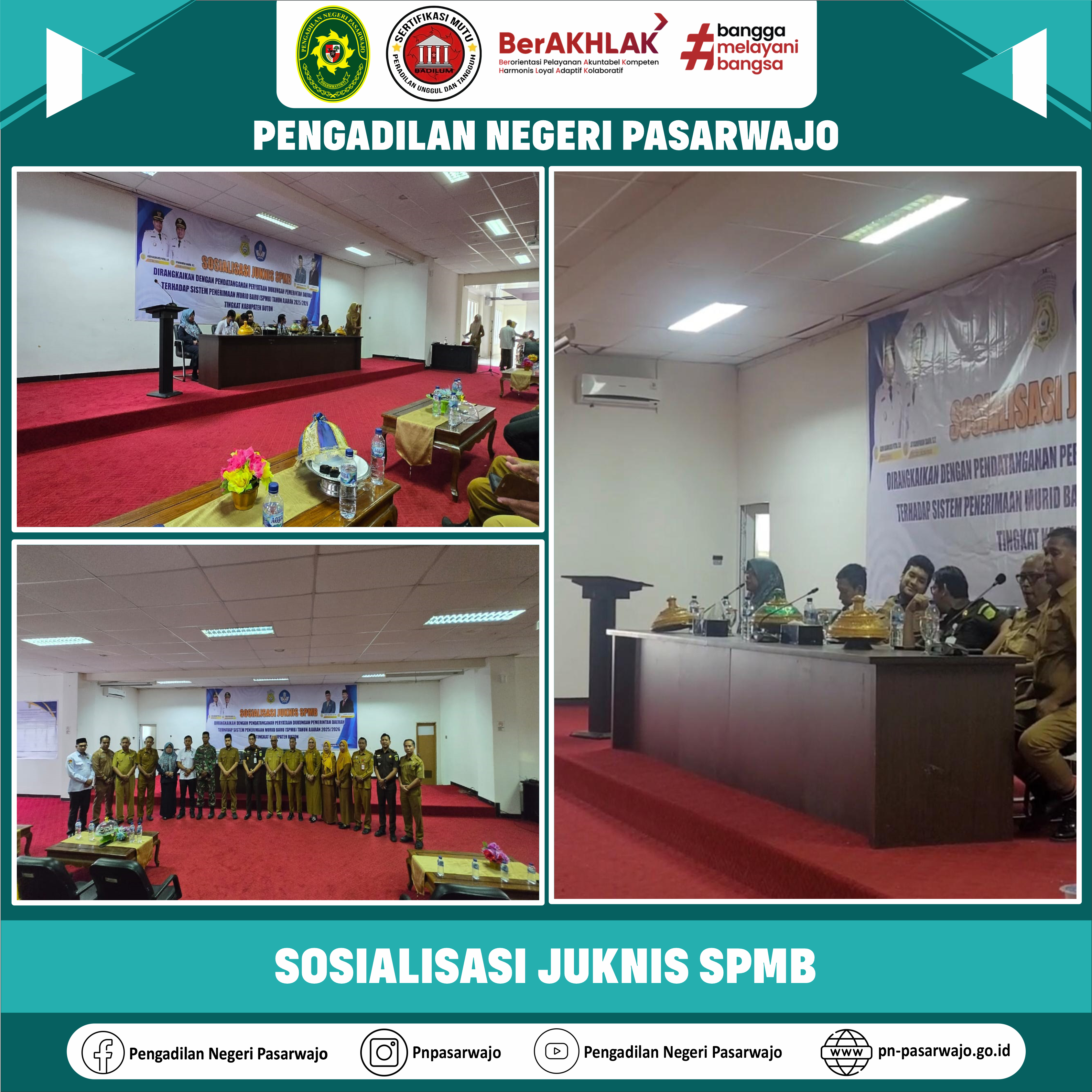 Pasarwajo | Selasa, 8 Juli 2025, Ibu Nur Dwi Rahti, S.H., Kasubbag Perencanaan, Teknologi Informasi dan Pelaporan, mewakili Ketua Pengadilan Negeri Pasarwajo, mengikuti kegiatan Sosialisasi Juknis SPMB (Seleksi Penerimaan Murid Baru) yang dirangkaikan dengan penandatanganan pernyataan dukungan pemerintah daerah terhadap sistem penerimaan murid baru tahun ajaran 2025/2026 tingkat kabupaten buton. Kegiatan ini dilaksanakan di Aula Kantor Bupati Buton. Kegiatan ini berjalan dengan baik dan lancar dari awal hingga akhir.