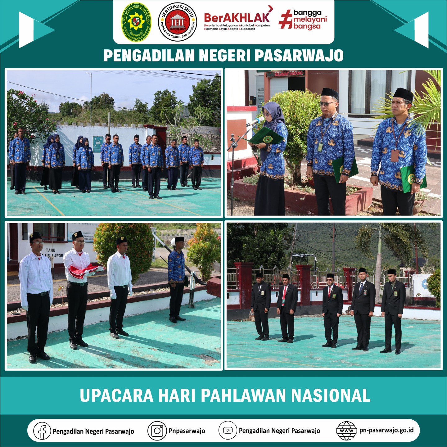 Pasarwajo | Senin, 10 November 2025, Bertempat di halaman Pengadilan Negeri Pasarwajo, telah dilaksanakan Upacara memperingati Hari Pahlawan Nasional. Upacara dengan tema "Pahlawan Teladanku Terus Bergerak Melanjutkan Perjuangan" ini dipimpin langsung oleh Bapak Ivan Budi Hartanto, S.H., M.H., Ketua Pengadilan Negeri Pasarwajo dan diikuti oleh para Hakim, Panitera, Sekretaris, Pegawai serta PPPK Pengadilan Negeri Pasarwajo.