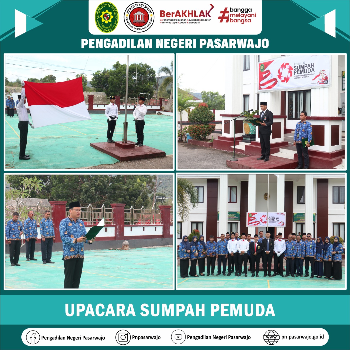 Pasarwajo | Selasa, 28 Oktober 2025, bertempat di Halaman Kantor Pengadilan Negeri Pasarwajo telah dilaksanakan Upacara memperingati Hari Sumpah Pemuda Ke-97, Upacara dipimpin oleh Bapak Ivan Prana Putra, S.H., Hakim Pengadilan Negeri Pasarwajo dan diikuti oleh para Hakim, Pegawai dan PPPK Pengadilan Negeri Pasarwajo. Upacara Peringatan Hari Sumpah Pemuda, diawali dengan Pengibaran Bendera Merah Putih Kemudian dilanjutkan dengan pembacaan Teks Undang-undang Dasar 1945 dan Teks Keputusan Kongres Sumpah Pemuda 1928 serta ditutup dengan doa. Upacara tersebut berjalan dengan khidmat dan lancar. Peringatan Hari Sumpah Pemuda ke 97 tahun 2024 bertema “PEMUDA PEMUDI BERGERAK, INDONESIA MAJU”. Oleh karena itu marilah kita jadikan momentum peringatan Hari Sumpah Pemuda yang ke-97 ini sebagai momentum untuk meningkatkan semangat kita bersama membangun bangsa, Semoga Tuhan Yang Maha Esa senantiasa memberikan kekuatan kepada kita bersama untuk mampu membangun persatuan bangsa dan menggapai cita-cita kejayaan Indonesia.