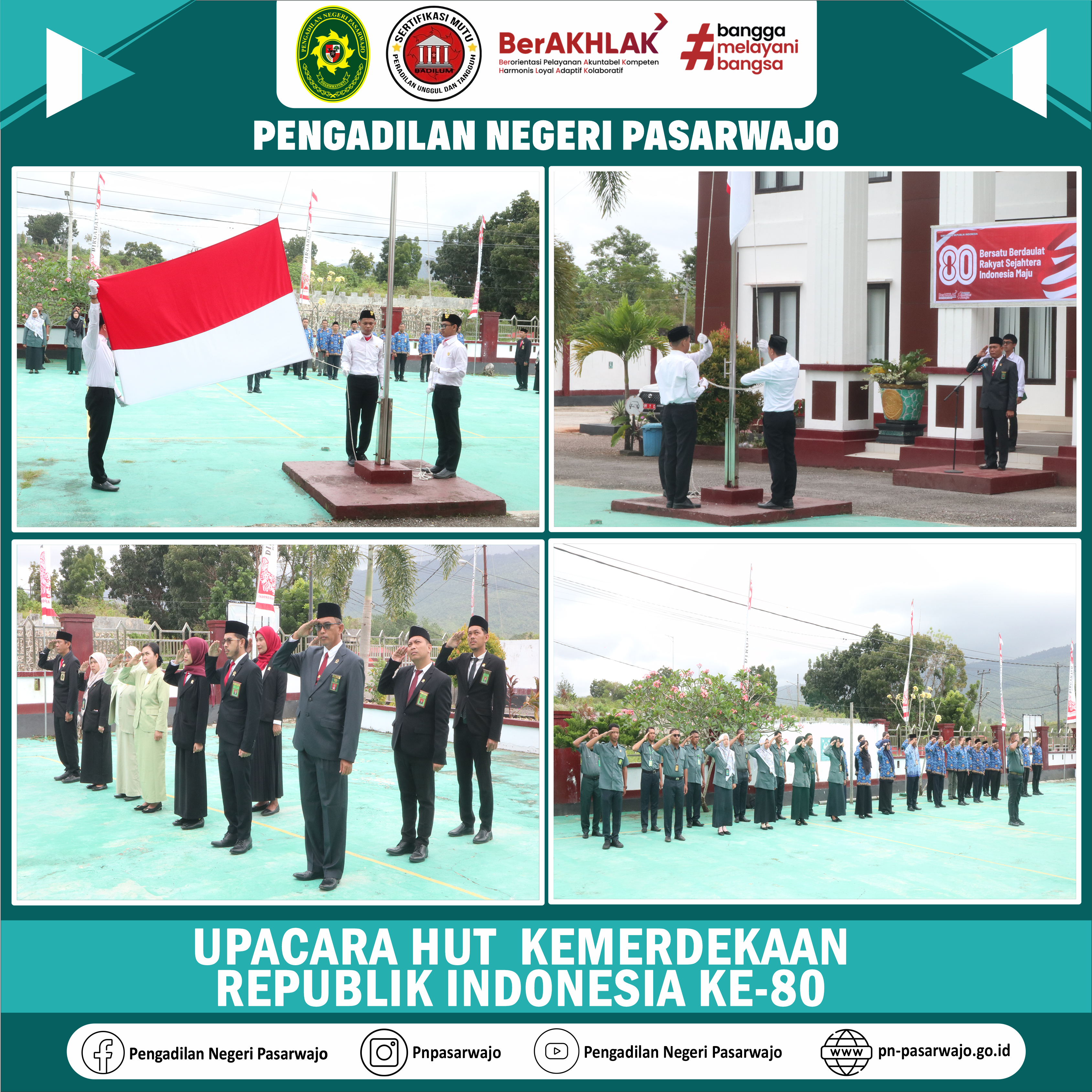 Pasarwajo | Minggu, 17 Agustus 2025, Bertempat di Halaman Pengadilan Negeri Pasarwajo telah dilaksanakan Upacara Gabungan antara Pengadilan Negeri Pasarwajo dan Pengadilan Agama Pasarwajo dalam rangka memperingati HUT RI Ke-80, Kemerdekaan Republik Indonesia Tahun 2025. Acara berlangsung dengan baik dan lancar dari awal hingga akhir.