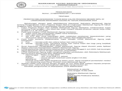 Sehubungan dengan telah diterbitkannya Keputusan Sekretaris Mahkamah Agung tentang Pengangkatan Calo ...