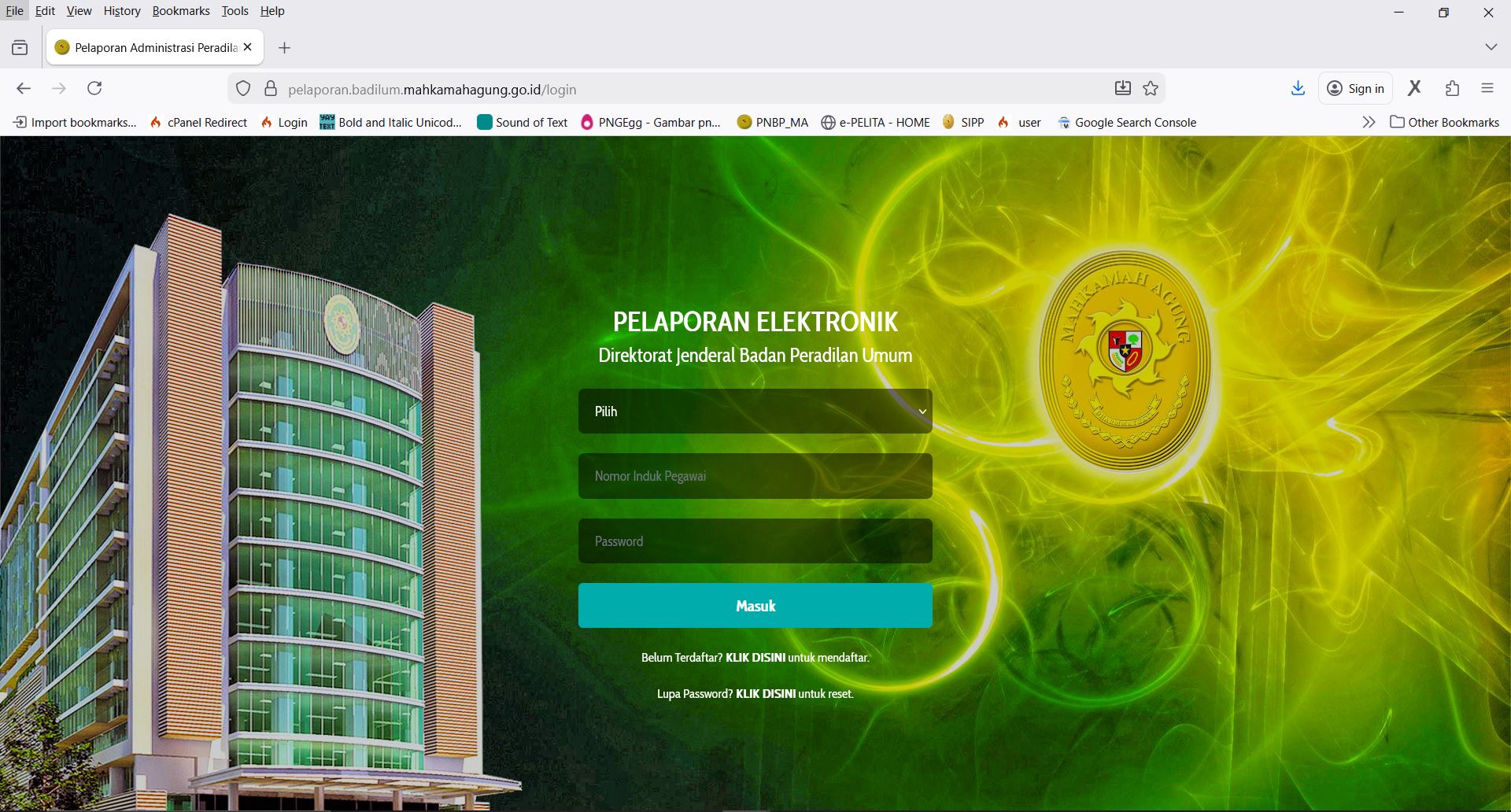 Pelaporan Administrasi Peradilan Umum Secara Elektronik dapat disampaikan melalui link berikut : https://pelaporan.badilum.mahkamahagung.go.id/login
